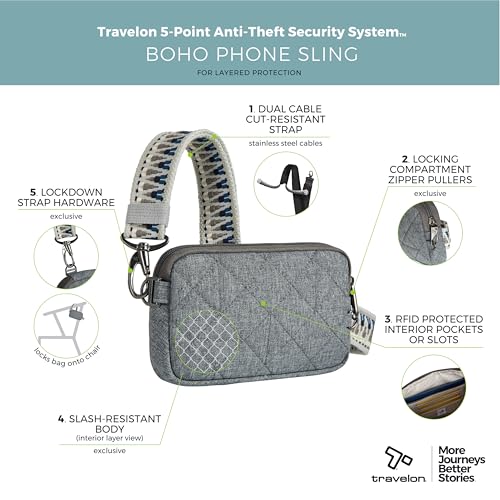The Boho Anti-Theft Telephone Sling’s feminine taste, soft touch with colors and patterns all speak to inspired living. Regardless of how busy life gets, surrounding yourself with the little things makes a difference in living a more fulfilling life. Boho taste delights the spirit at the same time as detailed craftsmanship, go back and forth organization and built-in security have your carry wishes covered. Now you’ll stop watching your bag and look as much as see the arena in front of you. Our built-in 5-Point Anti-Theft security system will offer protection to your valuables from pickpockets and thieves. Includes slash-resistant mesh barrier in all 4 sides and bottom body panels; slash-resistant and lock-down strap; locking compartments; and RFID blocking organizer. Travelon packs your bag with peace of mind.