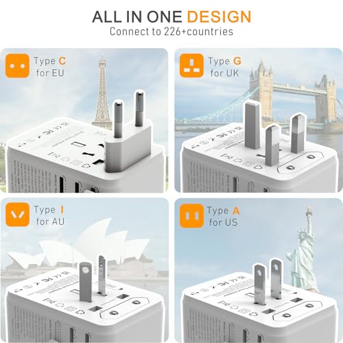 【Worldwide Travel Adapter】France, Germany, Italy, Spain, Iceland, Greece, Israel (Type C ); UK, Ireland, London, England, Scotland, Dubai (Type G); China, Australia, New Zealand (Type I); USA, Japan, Canada (Type A), and more. Ideal for your worldwide travel or business trip.