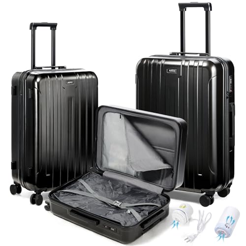 Vacuum Luggage Sets 3 Piece with TSA Lock, Hard Shell Suitcases with Wheels, Lightweight Travel Luggage Set with Pumps,20/24/28 Inch,Black