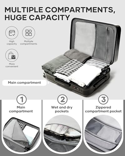 【Smart Organization, Effortless Packing】 X-strap + Zippered Divider: Keeps dress shirts and suits wrinkle-free and securely in place. Your belongings stay neatly organized even during sudden baggage checks. Dedicated Mesh Pocket: Provides designated storage for tablets and cables, boosting work efficiency during business trips. Waterproof Toiletry Compartment: Isolates damp towels or half-used shampoo bottles, preventing moisture from reaching dry items.