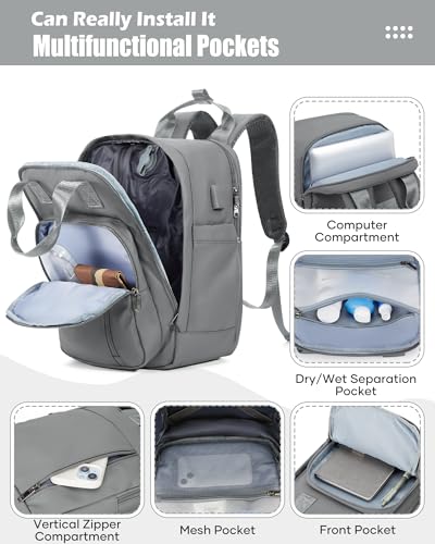 Vacuum Travel Backpack with Pump,Personal Item Carry on Backpacks Flight Approved 18x14x8 inches Women,Laptop Waterproof Work Compression bags hiking Casual Daypack Grey