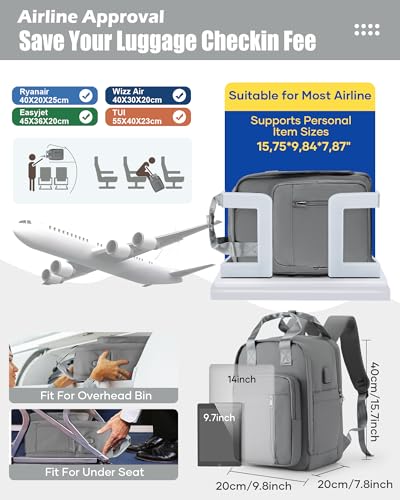 Airline approved backpack: Airline approved 18x14x8 inch portable travel bag that can be carried on the go,meets the size standards for carry on luggage of major airlines, can be placed on the aircraft’s luggage rack or under the seat, and saves check-in fees. Reduce the risk of luggage loss. The back can be fastened to the handle of the handcart to form a cohesive movement plan, allowing you to easily travel at the airport.