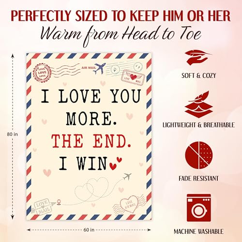 Valentines Day Gifts for Her Him – I Love You More Soft Fleece Throw Blanket 60×80 in – Anniversary Couple Gifts for Women, Birthday Romantic Gifts for Girlfriend Boyfriend Wife Husband
