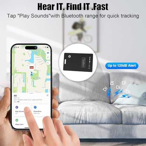 120dB Loud Ring for Location: Tap “Play Sound” in the Find My app, the wallet tracker card emits up to 120dB within Bluetooth range, you’ll hear beeps coming from under the couch, under the bed, or under the cushions.Now there’s no need to rummage around. If it’s not nearby, like at your office, a friend’s house, an unfamiliar shopping mall, or any farther location, you can navigate to its location on the map using the tracker.