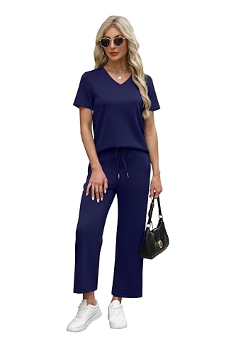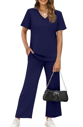 WIHOLL 2 Piece Sets for Women Summer Lounge Set Wide Leg Pants Matching Set Vacation Travel Outfits Beach Clothing