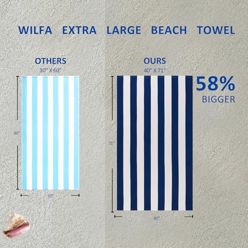 WILFA Extra Large Beach Towel – Oversized Mircofiber 40 x 70 inches, XL Striped Lightweight Pool Towel, Big Cabana Swim Travel Towel for Adults Mens Women,Dark Blue