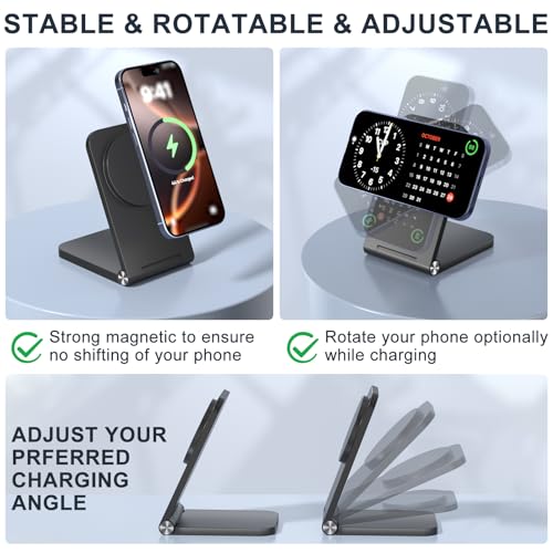 Wireless Charger, Magnetic Foldable Travel Fast Charging Station Stand for iPhone 17 16 15 14 13 12 Series, iPhone Wireless Mag-Safe Charger Dock for AirPods 3/2/Pro 2/Pro