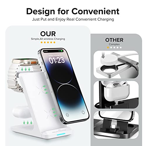 Wireless Charging Station, 3 in 1 Fast Wireless Charger Stand for Multiple Devices Apple Watch Ultra Series 11 10 9 8 7 6 SE 5 4 3 2, iPhone 17 16 15 14 13 12 11 Pro Max/Plus/Air/X/XS/XR/SE, Airpods
