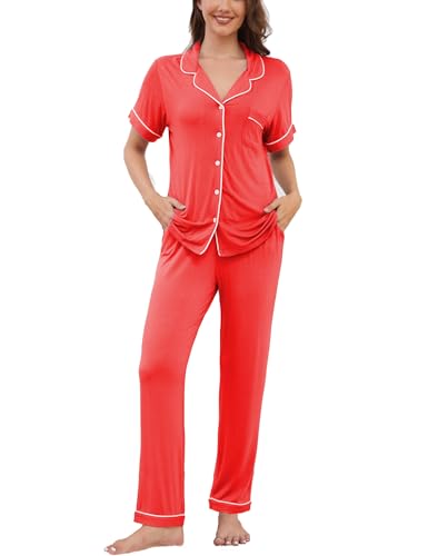 Womens Pajama Set Soft Pjs Short Sleeve Sleepwear with Long Pants 2 Piece Lounge Sets S-XXL