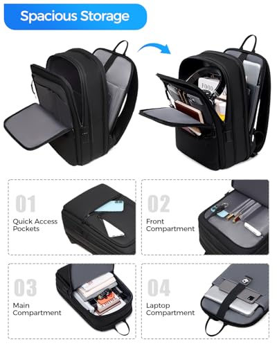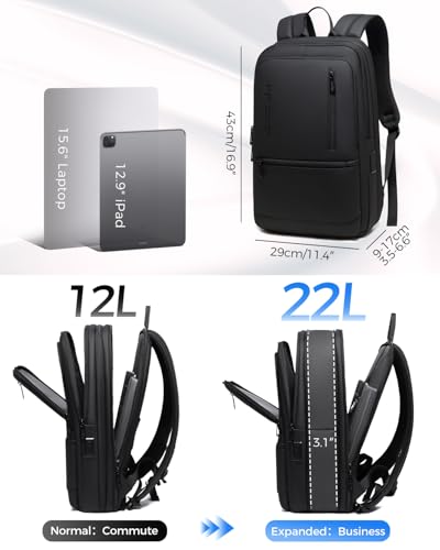 Work Backpack for Men, Expandable Backpack with USB C Charging Port, Water Resistant 15.6 Inch Laptop Backpack, Black