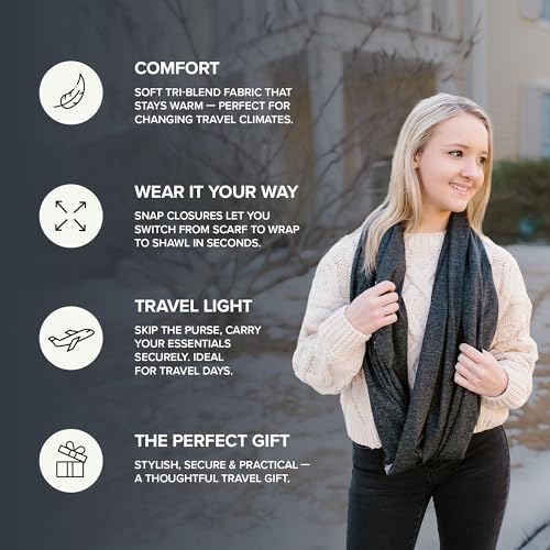 Zero Grid Infinity Travel Scarf Loop with Hidden Zipper Pockets for Passport, Phone, Cash, Cards